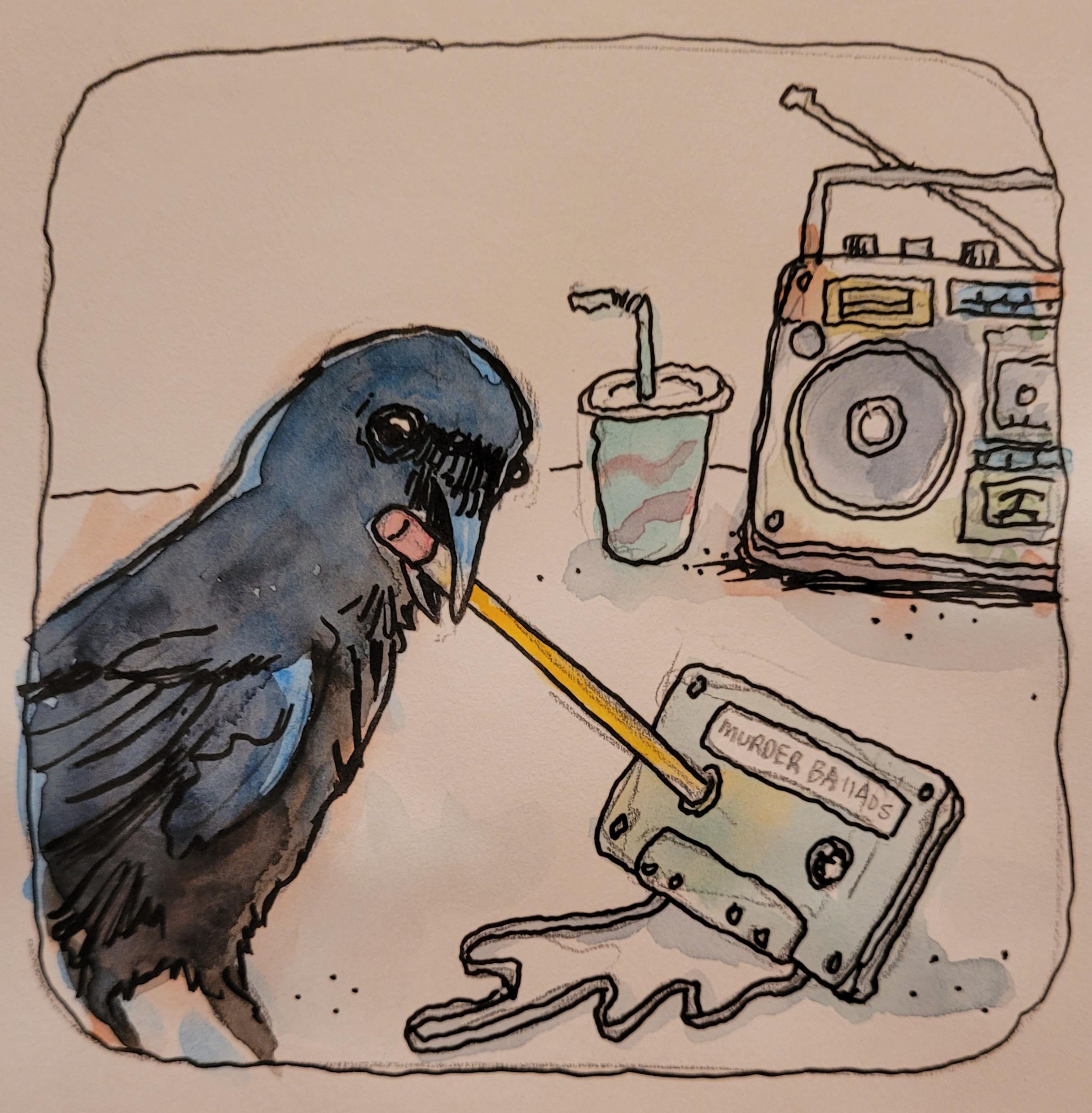 Crowvember offering 12: "The crow, being a tool user, knows how to fix his cassette."