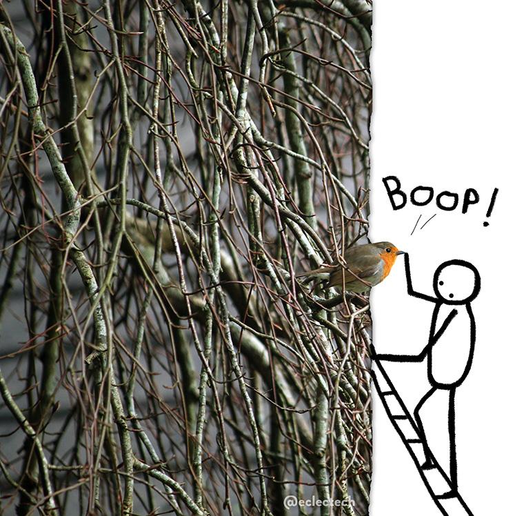 The robin came to say hello when I was gardening too, although it refused to pause in a convenient spot where Friend could give it a boop so extraordinary measures were required.